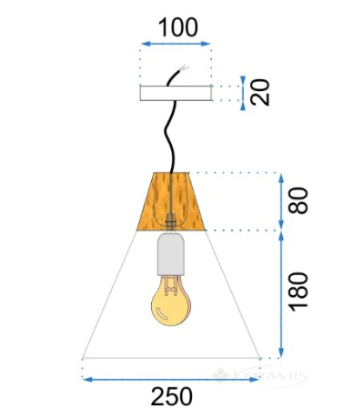Светильник выполнен из дерева в сочетании металла с металлической решеткой на потолке. Лампа имеет самую популярную резьбу под лампочки Е27. Длина кабеля может быть адаптирована к помещению или расположению.