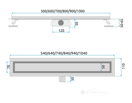 Польша, гарантия от произв. - 10 лет, материал нержавеющая сталь, длина 100 см, линейный слив + сифон + ножки + уплотнительная манжета