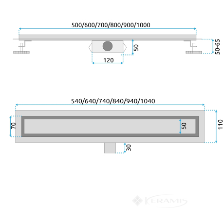 Польша, гарантия от произв. - 10 лет, материал нержавеющая сталь, длина 50 см, линейный слив + сифон + ножки + уплотнительная манжета
