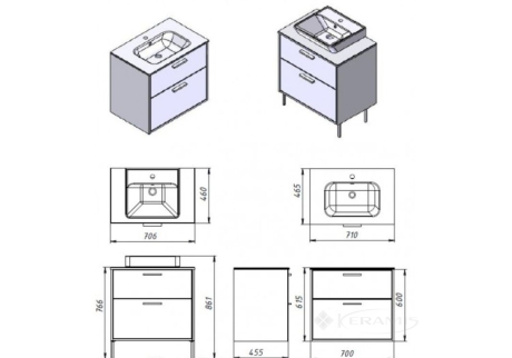 Тумба продается раздельно, без верха. Конструкцией изделия предусмотрена возможность укомплектовать его столешницей из МДФ+умывальник Neon/столешницей из влагостойкого материала HPL (без отверстия под умывальник, подходит для любого нужного вам накладного умывальника)/керамическим умывальником Piedra.