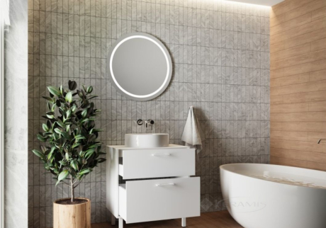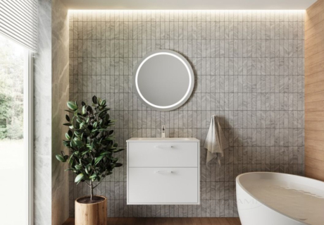 Особенностью этой тумбы является возможность укомплектования ее тремя вариантами верха по вашим предпочтениям: столешницей из МДФ+умывальник Neon в комплекте/столешницей из влагостойкого материала HPL (без отверстия под умывальник, подходит для любого нужного вам накладного умывальника)/керамическим. Такая опция позволит вам создать идеальный комплект мебели для вашей ванной!