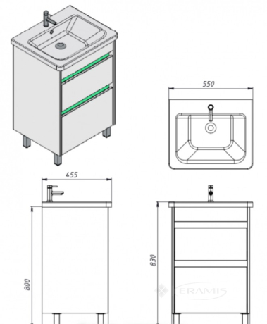 Комплектуется керамическим умывальником "Soft-55", производитель "Sanovit", Турция.