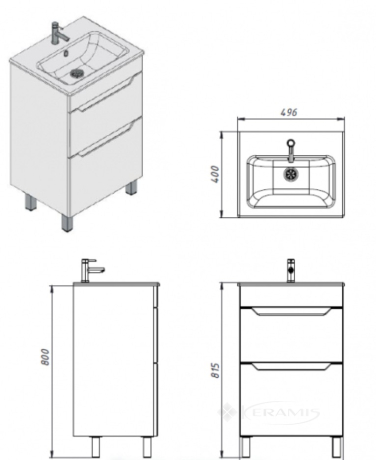 Комплектуется керамическим умывальником «Practico-50», производитель «Sanovit», Турция.
