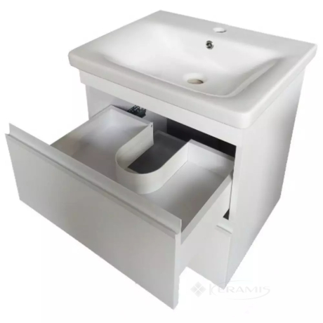 Тумбочка с умывальником Devit Frame 55 см с сифоном, белая (753055W)