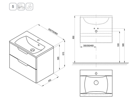 Чехия, гарантия от произв. - 5 лет, тумбочка под умывальник,тип установки: подвесные, цвет: белый/серый