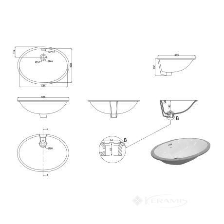 Отзывы о товаре Умывальник Devit Ovale 57x41,5 под столешницу, белый (1611136)1 отзыв