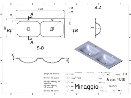 Перейти к подробному описаниюУмывальник Miraggio Jessel 1100-2 Mirasoft 110x45 белый матовый (1093) - двойной мебельный умывальник из литого мрамора JESSEL 1100-2 – оптимальное решение для большой семьи. Плавные линии чаш препятствуют разбрызгиванию воды, широкие крылья позволяют удобно разместить гигиенические средства. Умывальник имеет несколько типов монтажа – накладной и врезной.