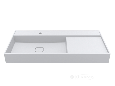 Матовый умывальник Soul 1000 прямоугольной формы с четкими линями станет беспроигрышным выбором для просторных ванных комнат. Особенностью этого умывальника является асимметричное расположение чаши, которая находится слева, оставляя правую часть умывальника достаточно функциональной, чтобы использовать для размещения косметики, туалетных принадлежностей или других ванных аксессуаров. Дополнительная поверхность для аксессуаров защищена небольшими бортами, которые помешают падению косметики на пол и протеканию воды. Благодаря значительной ширине этот умывальник обеспечивает максимальный комфорт и функциональность. Предусмотрено несколько вариантов монтажа: подвесной на стену, установку на тумбу или монтаж в столешницу. По умолчанию в модели предусмотрены крепежные отверстия для подвесного типа монтажа. Дополнительная обрезка по периметру модели не предусмотрена.