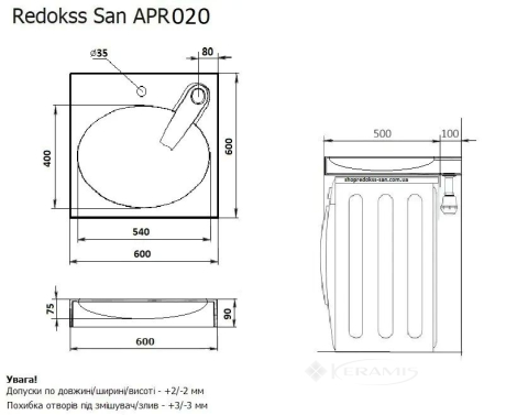 Отзывы о товаре Умывальник на стирательную машинку Redokss San Ocean 60x60см белый (APR020)1 отзыв