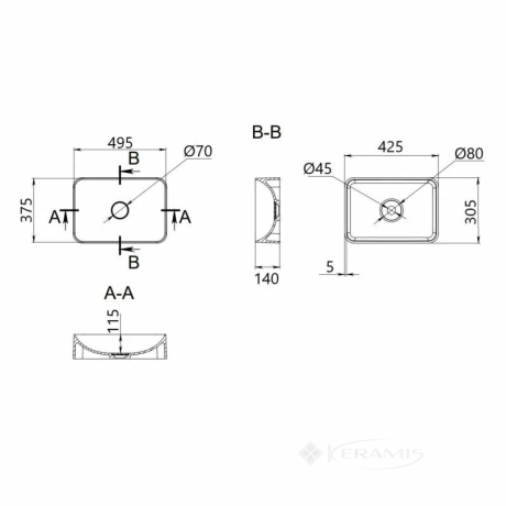 Чехия, гарантия от произв. - 27 лет, цвет белый, размер 50х38х14 см, высота 14 см, раковина, донный клапан.