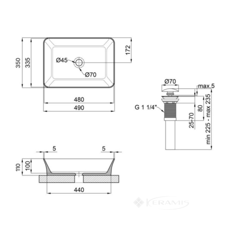 Чехия, гарантия от произв. - 27 лет, цвет белый, размер 49х35х11 см, высота 11 см, раковина, донный клапан.