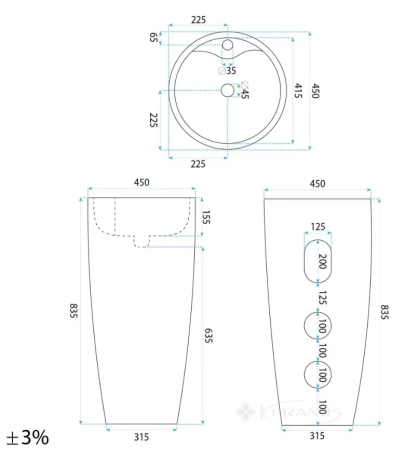 Отзывы о товаре Умывальник Rea Anya 45x45x84 отдельностоящий, savana matt (REA-U3614)1 отзыв