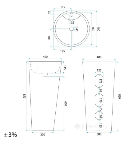 Отзывы о товаре Умывальник Rea Blanka 40x40x85 отдельностоящий, savana matt (REA-U3615)1 отзыв