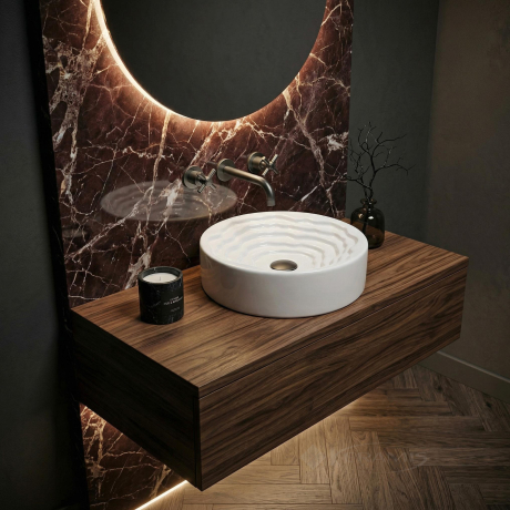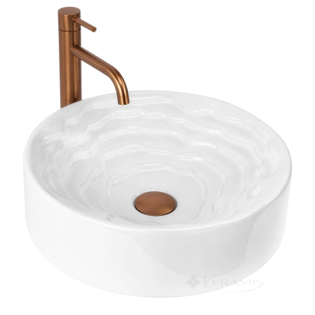 Откройте новое измерение дизайна в вашей ванной комнате с круглой накладной раковиной Rea Calla. Эта керамическая модель сочетает в себе минималистичную внешнюю форму с удивительной художественной внутренней частью чаши, становясь настоящим украшением любой ванной комнаты.