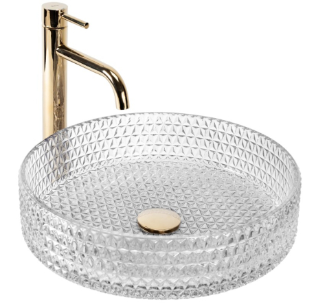 Современная хрустальная раковина серии Cristal будет прекрасно смотреться в вашей стильной ванной комнате. Он изготовлен из высококачественного стекла и может быть установлен на столешнице или шкафу. Интересный визуальный эффект подчеркнет свет, отражающийся в кристаллах. Стеклянный умывальник с хрустальной отделкой, несомненно, выделяется своим интересным дизайном.