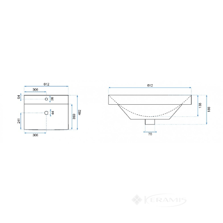 Польша, гарантия от произв. - 2 года, цвет белый, размер 48,2x61,2 см, высота 18,8 см, с отверстием для смесителя