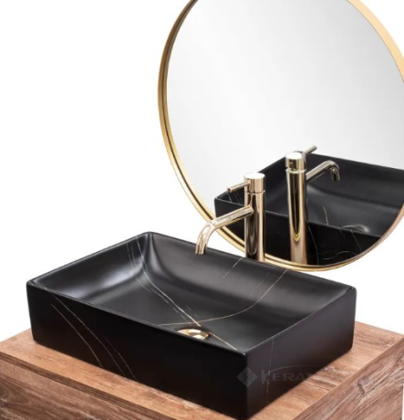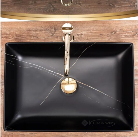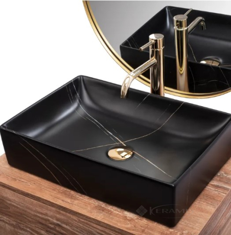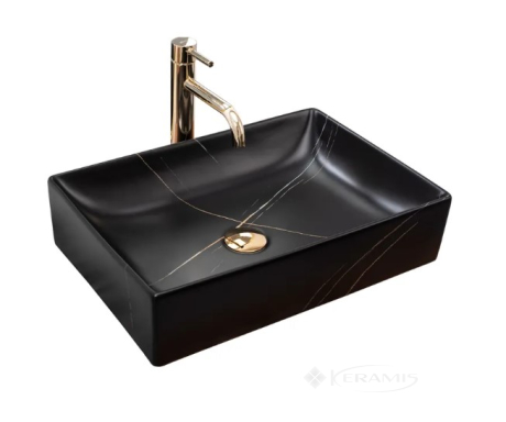 Умывальник Rea Inga 34,5x51 black marble mat (REA-U8006) - Красивый и чрезвычайно функциональный умывальник Inga черного цвета с золотыми прожилками, имитирующими натуральный камень. Каждый экземпляр имеет уникальный и неповторимый рисунок. Это продукт, который идеально заполнит пространство вашей ванной комнаты, сохранив при этом безупречный внешний вид и эстетику интерьера. Умывальник приспособлен для установки на столешницу или тумбу. Благодаря специальной производственной фазе он долговечен и легко моется. Санитарная керамика высочайшего качества с матовым черным покрытием привлечет всеобщее внимание.