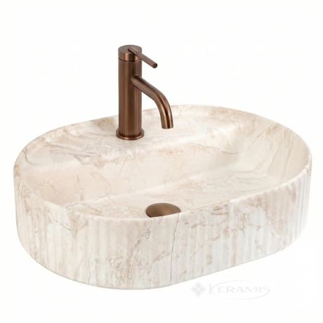 Накладная раковина Rea Marcela 50 в отделке Saturn предназначена для тех, кто ценит выразительный дизайн в сочетании с сдержанной элегантной цветовой гаммой. Удлинённая овальная форма выглядит легко и современно, а вертикальные декоративные рёбра придают модели архитектурный характер. Отличный выбор для премиальных современных ванных комнат, где важны форма и детали.
