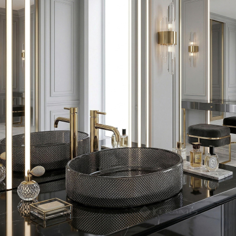 Ищете элемент, который придаст вашей ванной комнате по-настоящему королевское сияние? Накладная раковина Mirella, выполненная из толстого декоративного стекла, — идеальный выбор для тех, кто ценит эксклюзивность и ювелирный дизайн. Её уникальная структура делает изделие центральным элементом интерьера, восхищая игрой света и точностью исполнения, способной преобразить любое пространство.