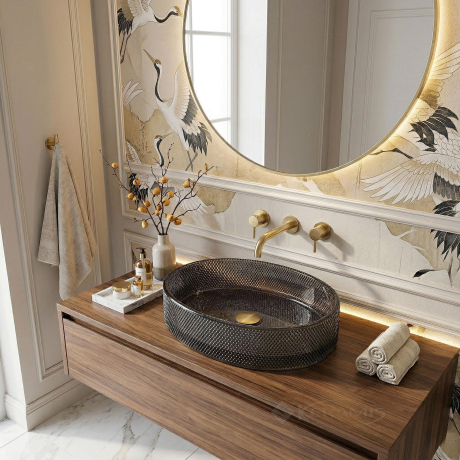 Идеальна для различных стилей – овальная форма и богатый декор делают модель подходящей для интерьеров в стиле гламур, классического ар-деко и современных luxury-пространств.