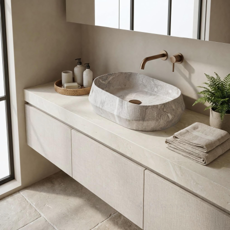 Выберите накладную раковину Rea Zoe Rock, если вы ищете современные и нестандартные решения для ванной комнаты. Эта модель выделяется асимметричной конструкцией и фактурой, вдохновлённой камнем. Изготовленная из прочного композита Artificial Stone, она сочетает выразительный внешний вид с высокой износостойкостью.