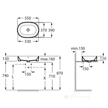 Перейти к подробному описаниюумывальник Roca Gap 55x39 см, накладной, с переливом, без отверстия под смеситель (A3270Y1000)