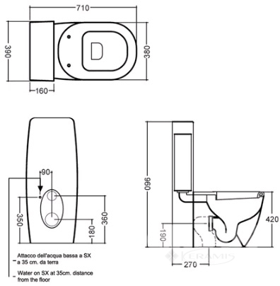 с керамическим бачком (LON 18) с двойным механизмом смыва на 4,5-6 литров