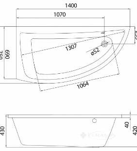 Польша, гарантия от произв. - 7 лет, материал: акрил, форма: асимметричные, длина: 1 400, ширина: 750, толщина акрила: 4 мм, установка: пристенная