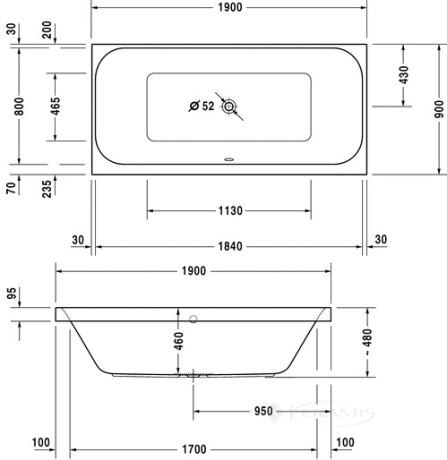 Германия, гарантия от произв. - 5 лет, материал: акрил, форма: прямоугольные, длина: 1 900, ширина: 900, толщина акрила: 5 мм, установка: отдельностоящая