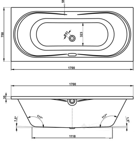 Чехия, гарантия от произв. - 10 лет, материал: акрил, форма: прямоугольные, длина: 1 700, ширина: 750, установка: пристенная