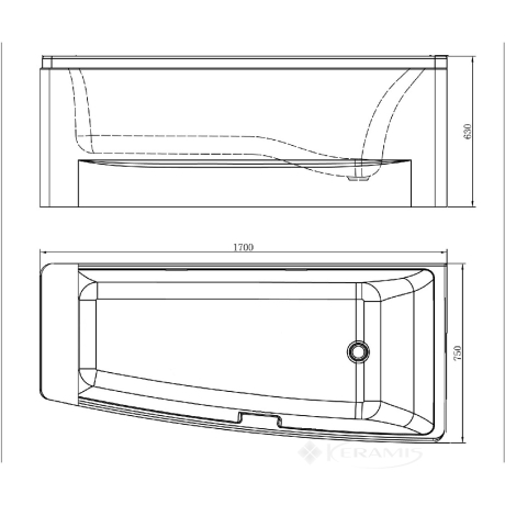 Испания, гарантия от произв. - 7 лет, цвет: белый, материал: акрил, форма: прямоугольные, длина: 1 700, ширина: 750, толщина акрила: 5 мм, установка: пристенная