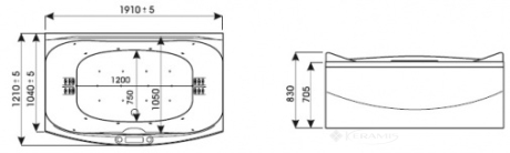 Италия, гарантия от произв. - 10 лет, материал: акрил, форма: прямоугольные, длина: 1 910, ширина: 1 210, установка: отдельностоящая