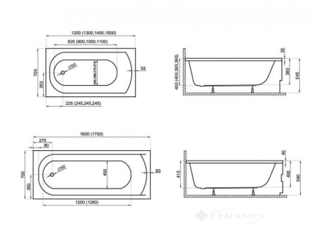 Польша, гарантия от произв. - 10 лет, цвет: белый, материал: акрил, форма: прямоугольные, длина: 1 600, ширина: 700, установка: пристенная