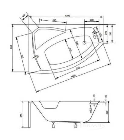 Польша, гарантия от произв. - 10 лет, цвет: белый, материал: акрил, форма: асимметричные, длина: 1 300, ширина: 850, толщина акрила: 4 мм, установка: пристенная