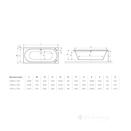 Польша, гарантия от произв. - 20 лет, цвет: белый, материал: акрил, форма: прямоугольные, длина: 1 795, ширина: 795, толщина акрила: 4 мм, установка: пристенная
