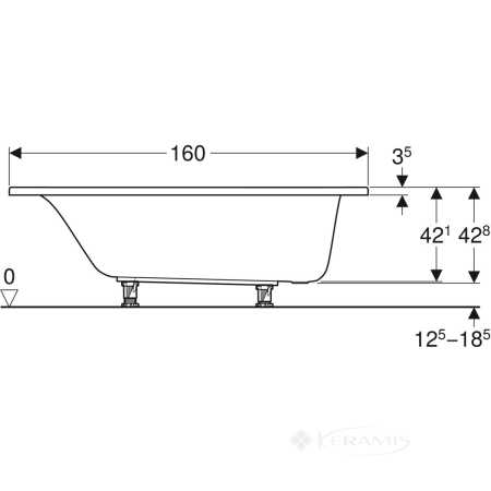 Отзывы о товаре Ванна акриловая Geberit Selnova 160x70 прямоугольная, с ножками, белая (554.282.01.1)1 отзыв