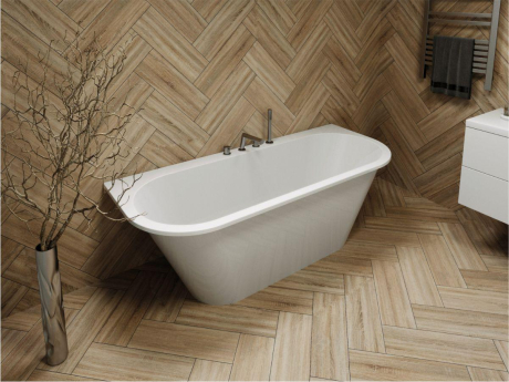 Искусственный камень – прочный и долговечный материал. Основным компонентом смеси является молотая мраморная крошка или боксит, которые смешивают с полиэфирными смолами. В структуре ванны отсутствуют микропоры, что делает невозможным развитие бактерий в толще стенок.