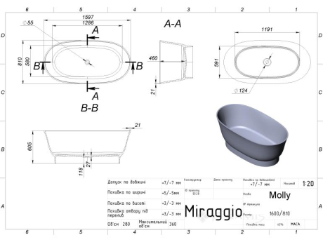 Сантехника MIRAGGIO производится по авторской технологии смешивания мраморной крошки и полиэфирной смолы в вакууме. Материал ванны – MIRAMARBLE MATT. В ее структуре отсутствуют микропоры, что исключает развитие микробов в толще стен. Дополнительно изделие покрыто антибактериальным гелем. Поверхность глянцевая ванна.