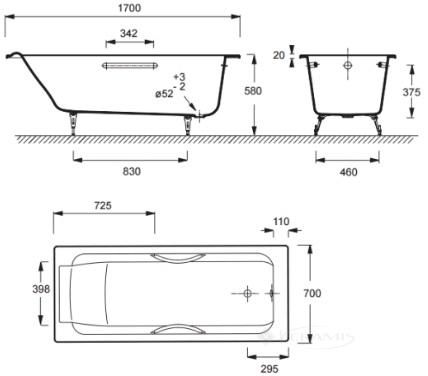 Франция, гарантия от произв. - 25 лет, цвет: белая, материал: чугун, форма: прямоугольные, длина: 70, ширина: 170, установка: пристенная