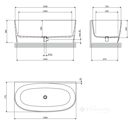 Польша, гарантия от произв. - 5 лет, цвет: белый, материал: литой камень, форма: другие формы, длина: 1 580, ширина: 770, установка: пристенная
