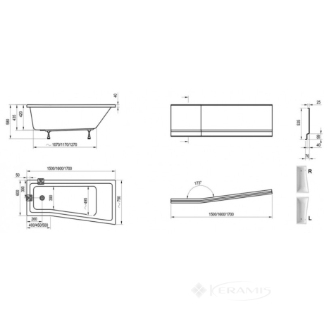 Чехия, гарантия от произв. - 10 лет, цвет: белый, материал: акрил, форма: асимметричные, длина: 1 700, ширина: 750, установка: пристенная