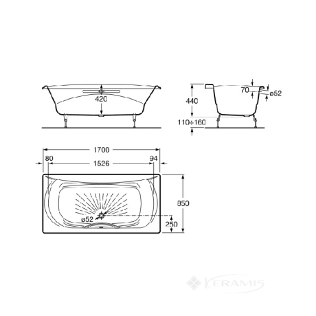 Испания, гарантия от произв. - 5 лет, цвет: белая, материал: чугун, форма: прямоугольные, длина: 85, ширина: 170, установка: пристенная