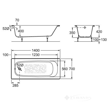 Испания, гарантия от произв. - 5 лет, цвет: белая, материал: чугун, форма: прямоугольные, длина: 70, ширина: 140, установка: пристенная