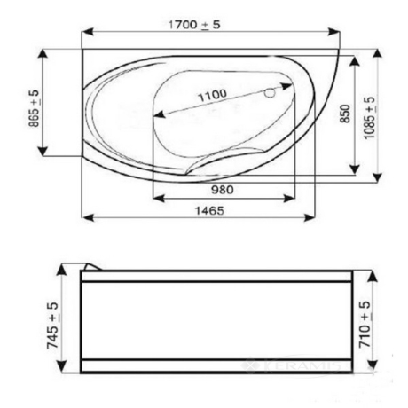 Италия, гарантия от произв. - 3 года, цвет: белая, материал: акрил, форма: асимметричные, длина: 1 700, ширина: 865, установка: пристенная