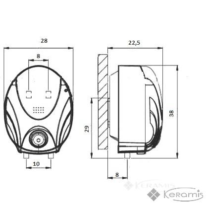 теплоизоляционный слой из высокоплотного пенополиуретана без вредных примесей фреоновых соединений; предохранительный клапан от повышенного давления, устройство защиты от перегрева и защита от избыточного объема воды в баке; размер (ВхШхГ) 35,5х28х22,35; вес 4,5кг
