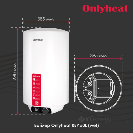 Бойлер Onlyheat REP50L(wet), 50 литров – обеспечит стабильное горячее водоснабжение для вашего дома, квартиры, офиса или дачи. Нагревательный элемент в виде мокрого ТЭНа с мощностью 2000 Вт быстро нагревает воду объемом 50 литров для ежедневного комфортного использования. Бойлер имеет классическую круглую форму и вертикальный способ установки, что позволяет оптимально использовать пространство. Удобное механическое управление с открытым регулятором температуры расположено на корпусе и позволяет легко контролировать уровень нагрева. Благодаря цифровому дисплею можно быстро отслеживать актуальную температуру воды и настройку работы бойлера, что делает его эксплуатацию более удобной и понятной.