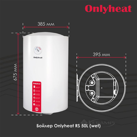 Бойлер Onlyheat RS50L(wet), 50 литров – обеспечит стабильное горячее водоснабжение для вашего дома, квартиры, офиса или дачи. Нагревательный элемент в виде мокрого ТЭНа с мощностью 2000 Вт быстро нагревает воду объемом 50 литров для ежедневного комфортного использования. Бойлер имеет классическую круглую форму и вертикальный способ установки, что позволяет оптимально использовать пространство. Удобное механическое управление с открытым регулятором температуры расположено на корпусе, и индикатор в виде стрелочного термометра позволяет легко контролировать уровень нагрева.