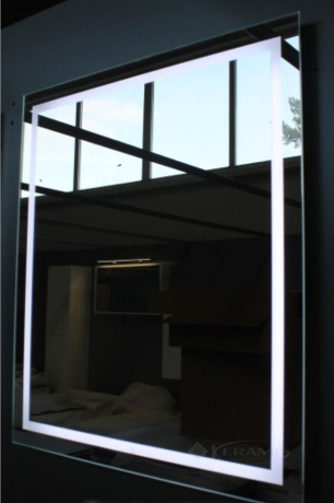 Зеркало имеет встроенное LED освещение по периметру полотна, а также кнопку-выключатель.