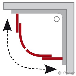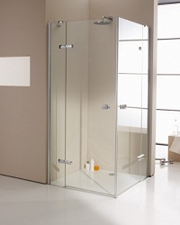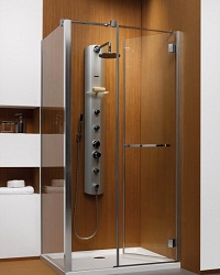 Двостулкові дверцята встановлюються на шарніри, які можуть в залежності від моделі кріпитися до кутового або пристінного вертикальному профілю. Нижні торцеві елементи дверей сприяють відведенню води всередину кабіни. Для фіксації таких дверцят в закритому положенні використовуються профільний шарнір з системою позиціонування і бічні ущільнювачі, що забезпечують герметичність душової кабіни.