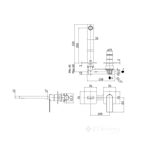 Італія, гарантія від виробника - 5 років, колір: хром, матеріал: латунь, одноважільний, установка на стіну, тип: на два отвори